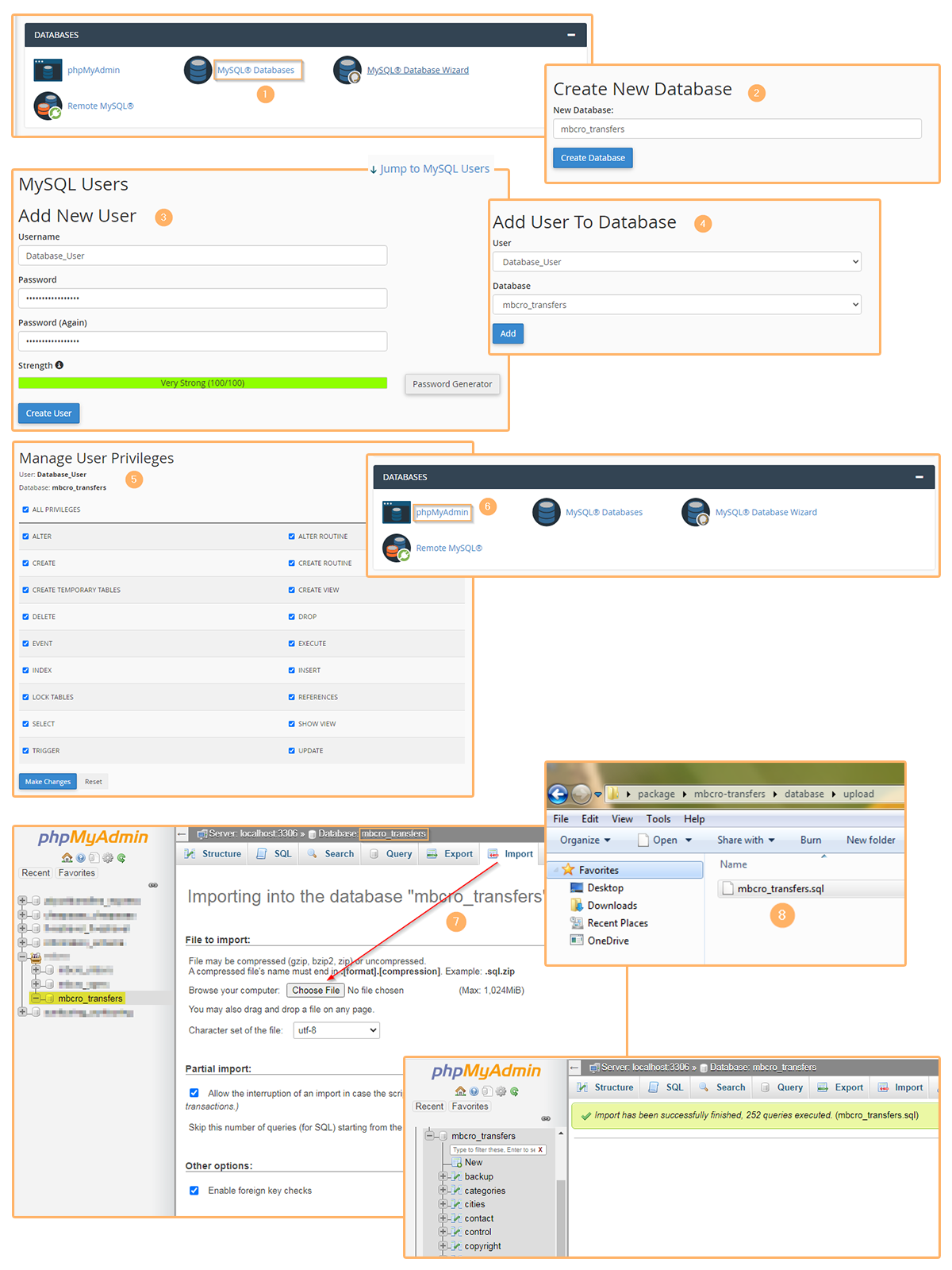Step 8 – navigate to the upload folder and select mbcro_transfers.sql and press Go to import the database.